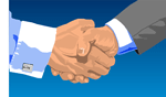 The original Microsoft Clip Art Library – their still evolving collection of symbols, drawings and maps – was originally based solely upon and licensed from The Genigraphics Reference Guide, the Corporation's extensive in-house collection of visual images. The sometimes-quirky digital drawings and symbols in the "Reference Guide" had been complied from years of work by Genigraphics’ own artists (they called them “operators”) and may possibly be the world's first digital clip art library. Artists were encouraged to work on their own ideas in their "down time" between assignments and occasionally these more-offbeat creations became part of the corporate library. The structure and the content of The Genigraphics Reference Guide (and the later-Microsoft version) has influenced clip art libraries since its release. How many times and how many ways have you seen that "Two Hands Shaking" image? (shown above right). The original version came from Genigraphics.