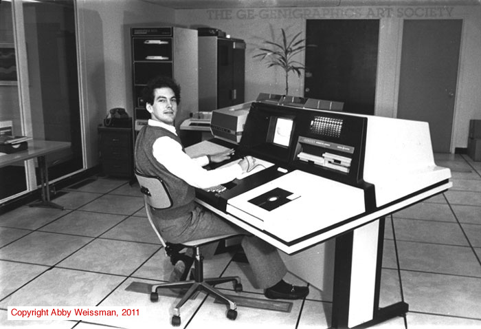 | The GENIGRAPHICS 100B INTERACTIVE WORKSTATION, circa 1981. Operated by Preston Stuart of National Imagemakers, NYC. Photo by Abby Weissman, 1981. |