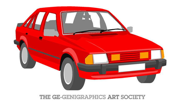RED FOUR-DOOR, CIRCA 1984. Graphic illustration from the Genigraphics Reference Guide. Drawn by Abby Weissman.