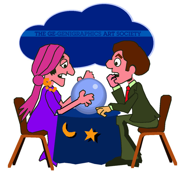 FORTUNE TELLER. Drawn by Abby Weissman. Based upon original concept by Mark Douglas, Account Executive, NYC Genigraphics Center. Graphic illustration from the Genigraphics Reference Guide.