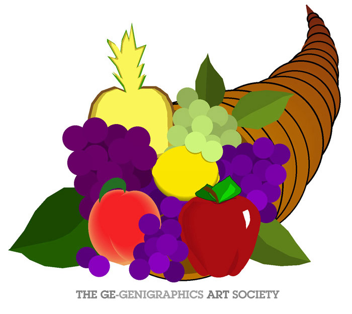 CORNOCOPIA, Circa 1984. Created using a combination of new and existing symbols. From the Genigraphics Reference Guide. Later reporduced for the Microsoft Clip Art Library by Abby Weissman in 1989.