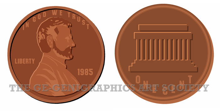 LINCOLN PENNIES, circa 1986. Drawing by Abby Weissman, NYC Service Bureau. From the Genigraphics Reference Guide.