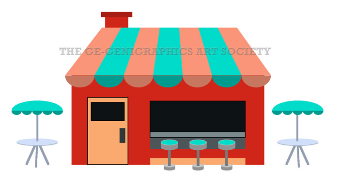 ROADSIDE SNACK BAR, circa 1983. Drawing by Abby Weissman. From the Genigraphics Reference Guide.