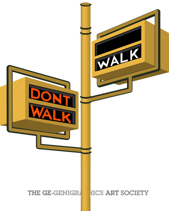 WALK - DON'T WALK SIGN, circa 1984. Original illustration by Steve Manning. From the Genigraphics Reference Guide. (Note: this drawing was cleaned up in Adobe Illustrator, 2009)